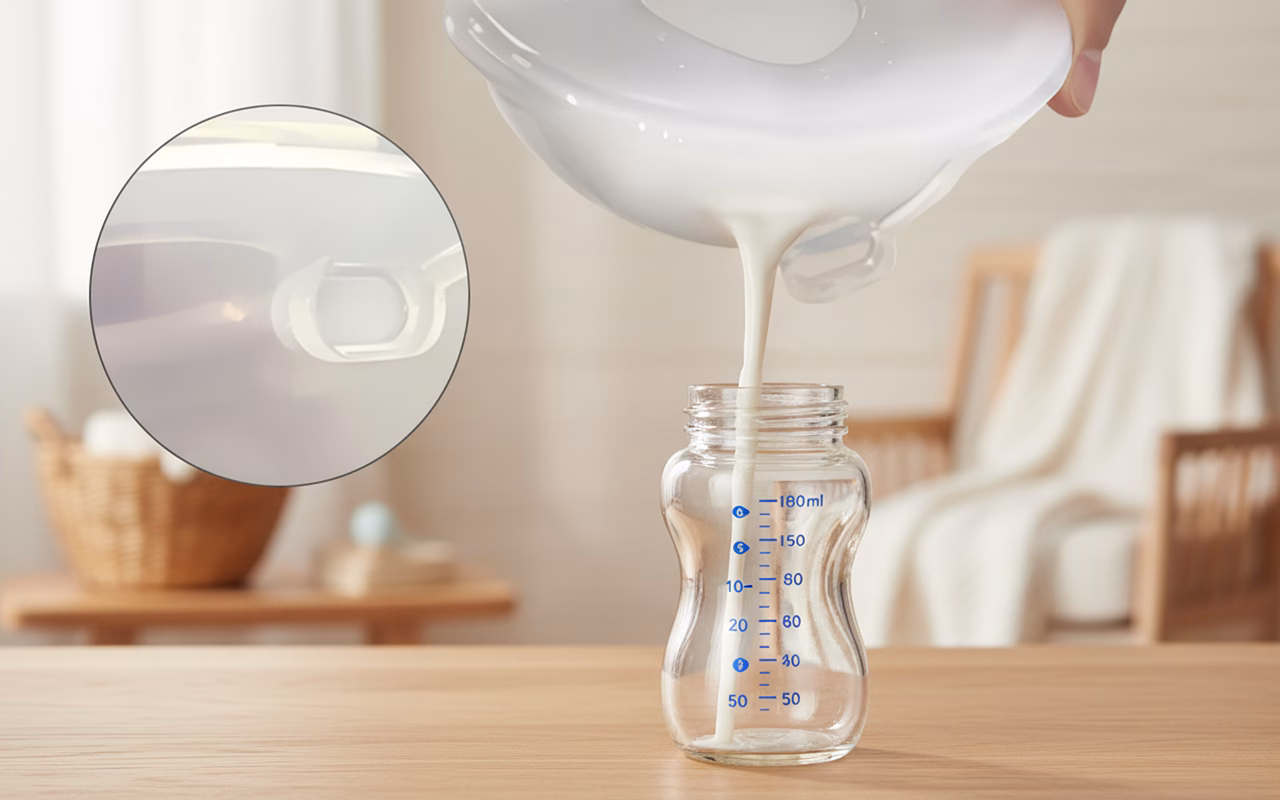 Schuif ze gewoon in je beha om stilletjes melk op te vangen. Melk in flesjes gieten is snel en zonder geknoei.