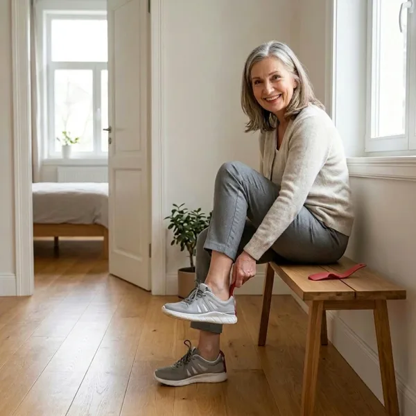 Schuif uw voet in enkele seconden in de schoenen zonder gedoe. De slimme gebogen vorm begeleidt uw hiel zachtjes voor pijnvrij aankleden.