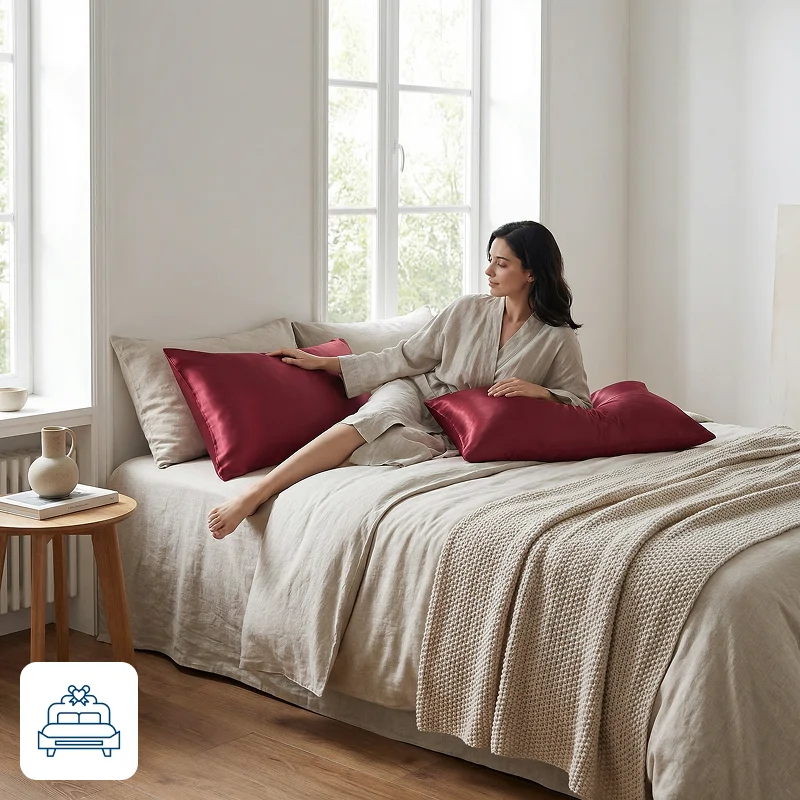 Ik heb nu minder rimpels op mijn gezicht in de ochtend. De zijdezachte hoes is erg knus en ook nog eens mooi!