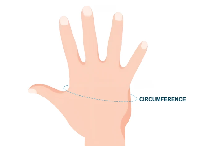 - 1. Wikkel het meetlint rond je handpalm, net onder de knokkels.