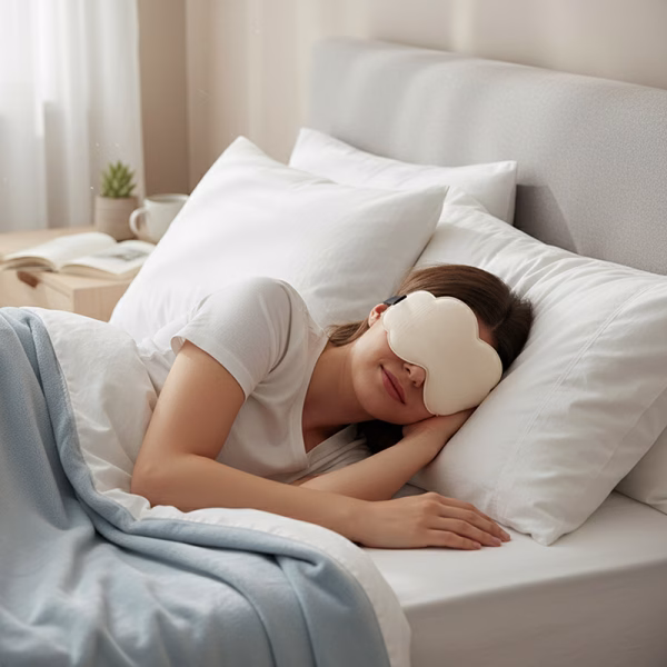 Ons oogmasker is ontworpen om elke ronding te volgen en elimineert druk op de ogen en de neusbrug. Het zorgt voor comfort in alle slaapposities en vermindert de kans op afdrukken op de huid.