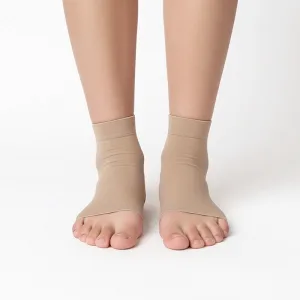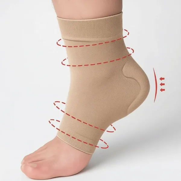 Zachte compressie ondersteunt je enkel en helpt uitglijden te voorkomen. Rekbaar materiaal zorgt voor een goede pasvorm voor alle voetmaten.