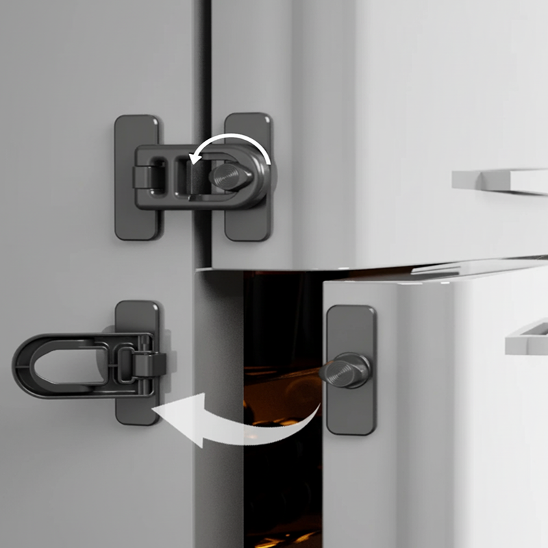 Onze tweeling sloop vroeger ’s nachts stiekem ijs pakken. Sinds we dit slot hebben geplaatst, blijft de koelkast dicht en gaan de snacks langer mee. Super eenvoudige draaibeweging voor volwassenen.
