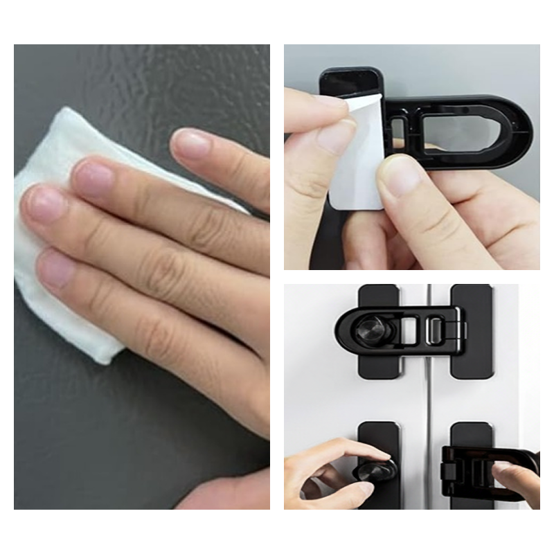 We huren, dus ik had iets nodig dat de koelkast niet zou beschadigen. Dit slot plakt stevig, is schoon te verwijderen en houdt mijn kleuter eindelijk uit de pakjes sap.