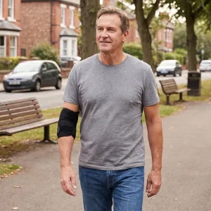 Ik werk veel buiten, dus mijn elleboog doet vaak pijn. Deze band houdt me de hele dag comfortabel en ik vergeet zelfs dat ik hem draag.