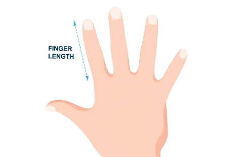 - 1. Gebruik een liniaal om de afstand te meten van de basis van de vinger waar deze de handpalm raakt tot aan de top.
