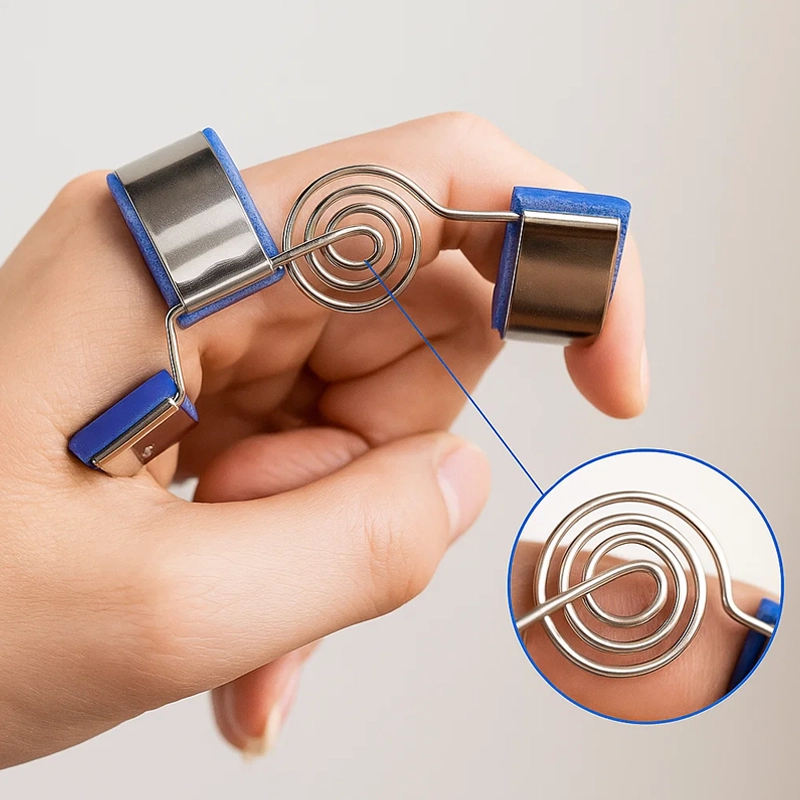 Ik typ de hele dag, en deze kleine beugel houdt mijn pijnlijke vinger stabiel. Hij is licht, makkelijk te vormen en blijft niet haken aan kleding of haar.