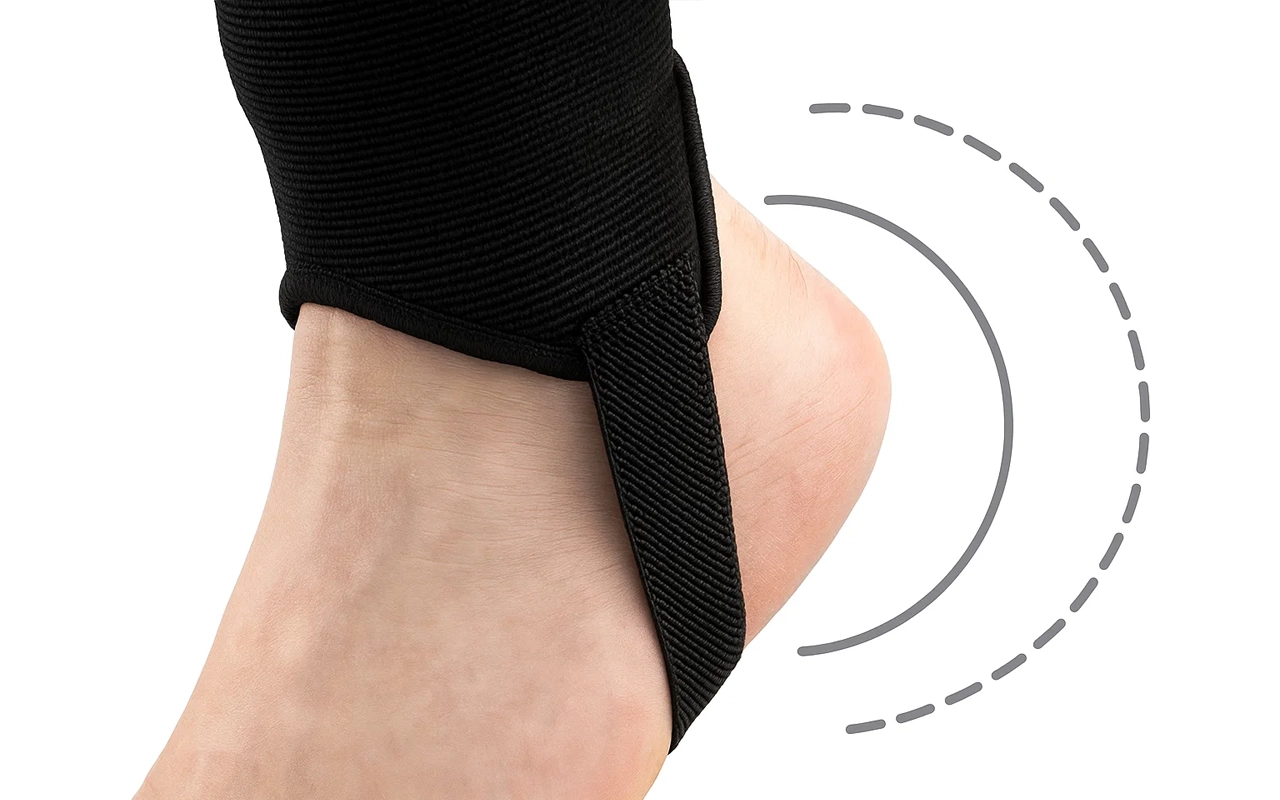 Deze enkelbrace laat je voet vrij bewegen zonder te verschuiven. Dit helpt je wendbaar en flexibel te blijven tijdens sportactiviteiten.