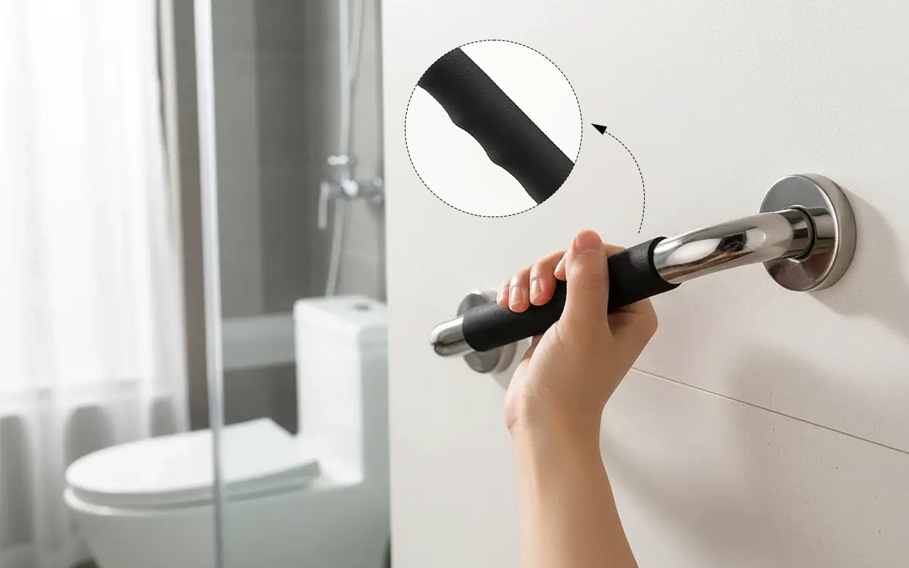Het siliconen gedeelte houdt de handen stabiel, zelfs als ze nat zijn. Elke aanraking voelt veilig en comfortabel aan voor dagelijkse ondersteuning.