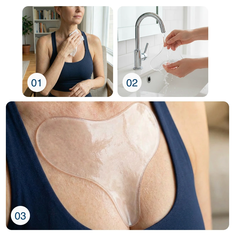 Mijn huid is gevoelig, maar deze pleister is super zacht. Mijn borst ziet er eindelijk jonger uit zonder irritatie of gedoe.