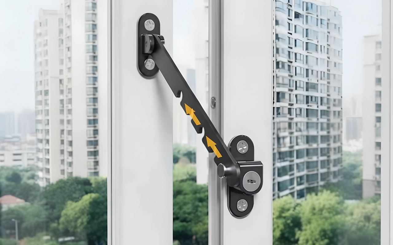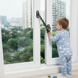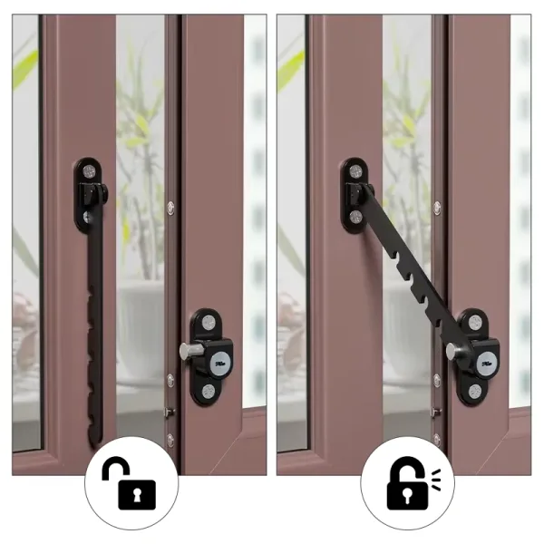 Houdt onze kinderen veilig zodat ze niet uit het raam kunnen vallen. Ik kan het nog steeds een beetje openzetten voor frisse lucht, wat heerlijk is in de zomer. Degelijk en veilig mechanisme.