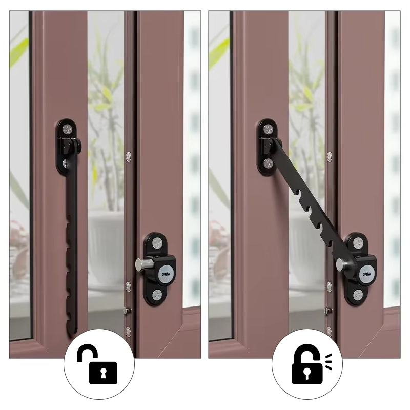 Houdt onze kinderen veilig zodat ze niet uit het raam kunnen vallen. Ik kan het nog steeds een beetje openzetten voor frisse lucht, wat heerlijk is in de zomer. Degelijk en veilig mechanisme.