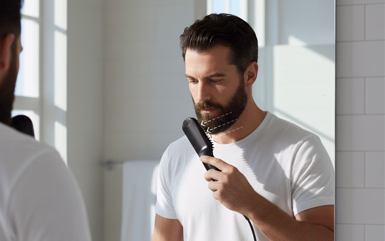 Anti-verbrandingsontwerp beschermt de huid tijdens het stylen van gezichtsbeharing. Gelijkmatige warmte houdt de haren gezond en voorkomt per ongeluk verbranden.