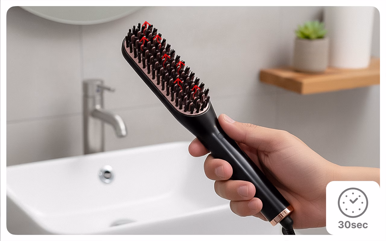 Tem weerbarstige gezichtsbeharing eenvoudig met de Ortorex stijltang. De verwarmde borstel maakt ochtenden makkelijker voor drukke mensen. Zachte borstelharen glijden over elke haar, waardoor alles netjes blijft. Geniet de hele dag van een verzorgde uitstraling die vertrouwen geeft.
