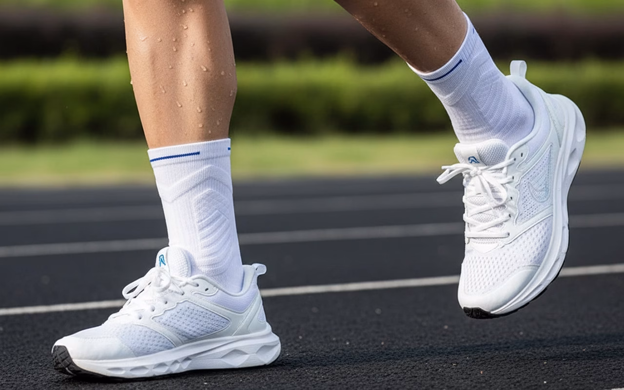Speciale badstofzool absorbeert zweet efficiënt voor langdurige frisheid. Minder wrijving betekent minder blaren en soepelere beweging.