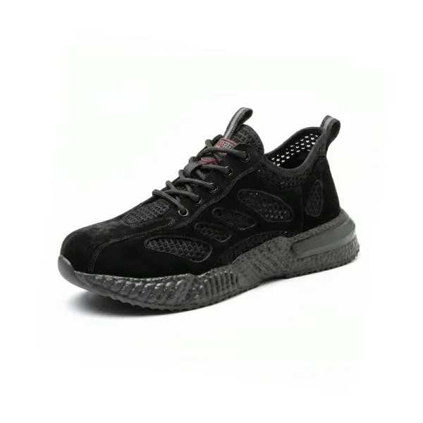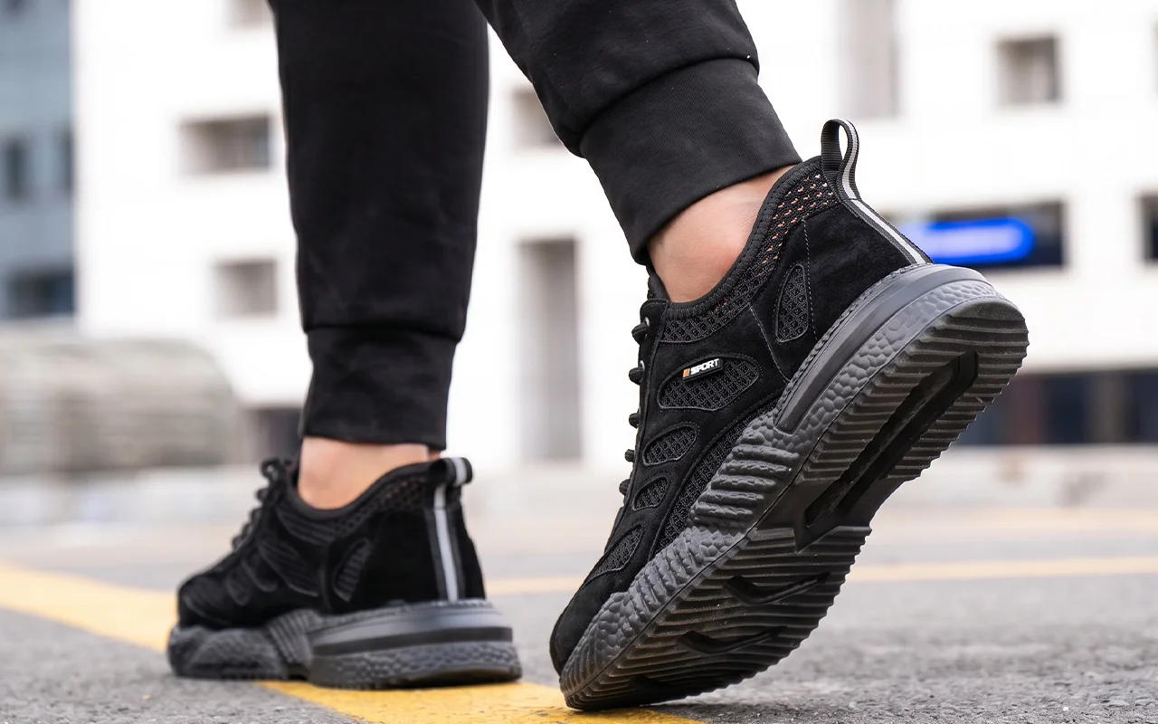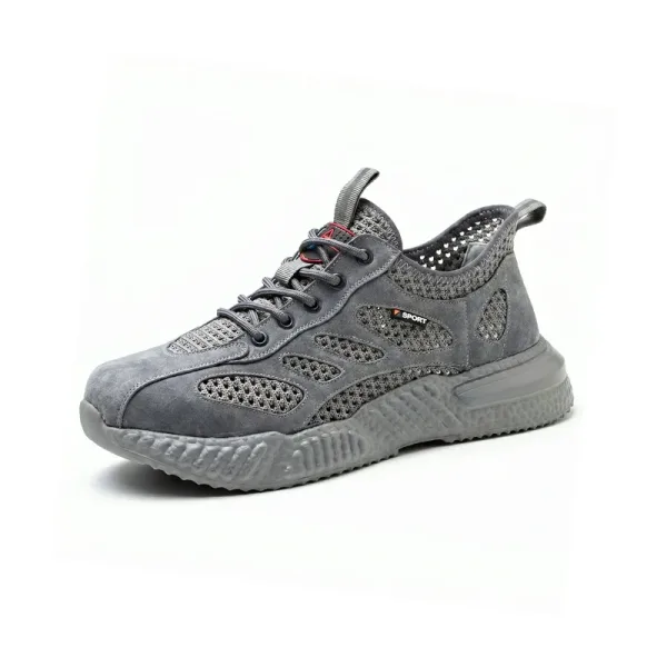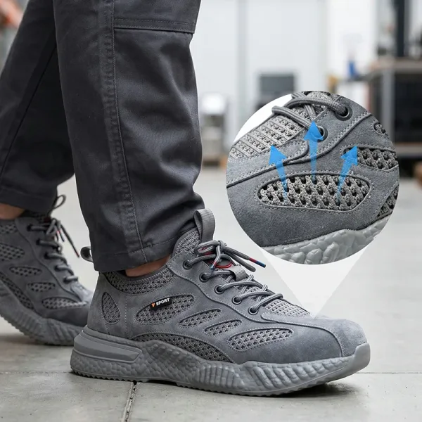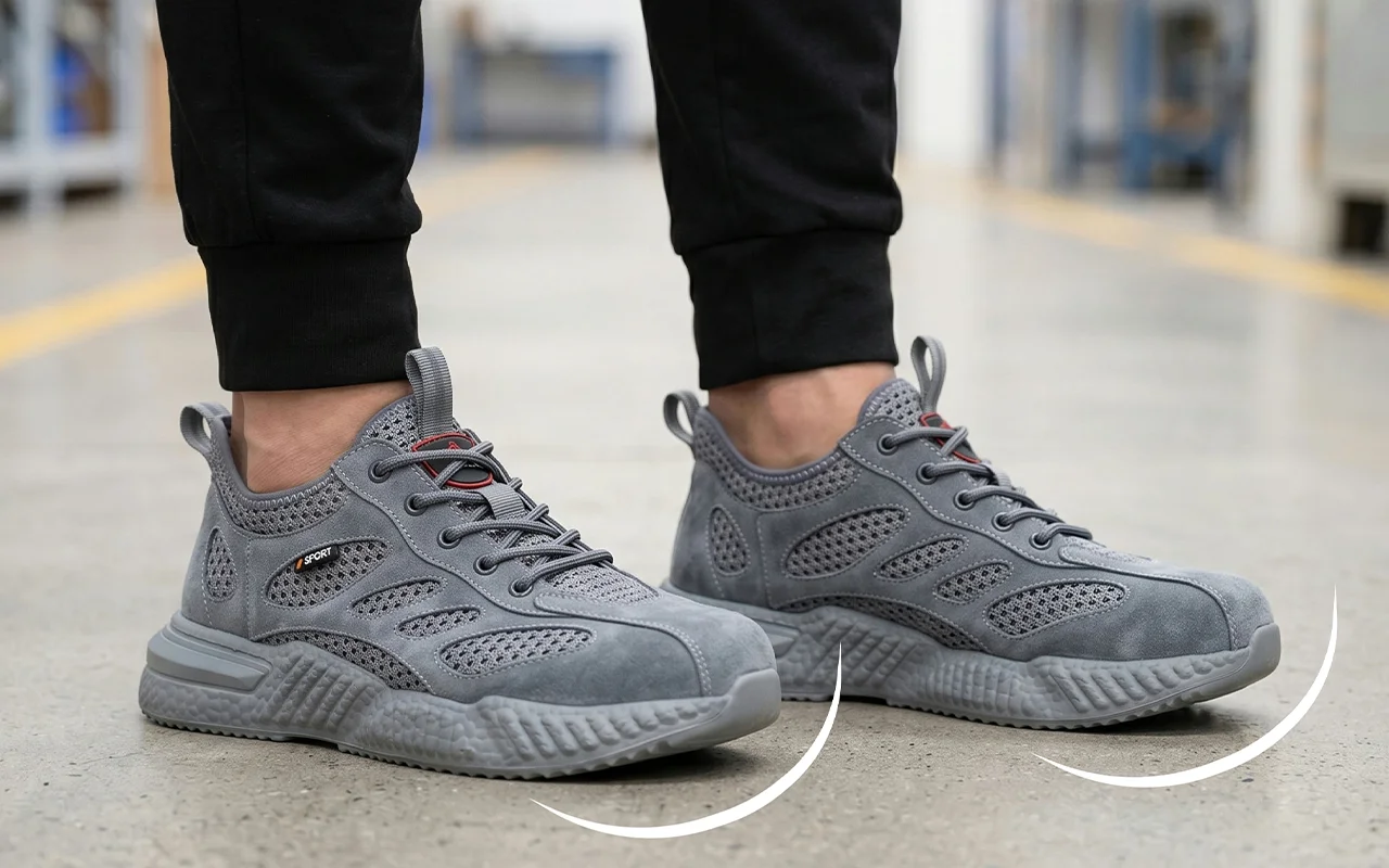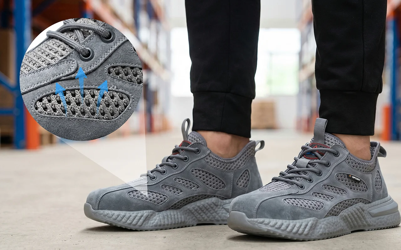 Ik sta de hele dag bij een machine. Deze schoenen van mesh voorkomen dat mijn voeten oververhit raken, de demping voelt zacht en de antislipzool houdt me stabiel op vettige plekken.