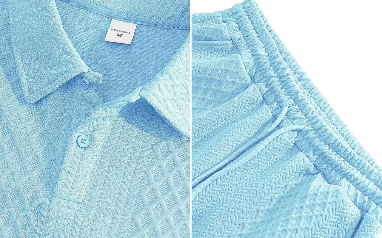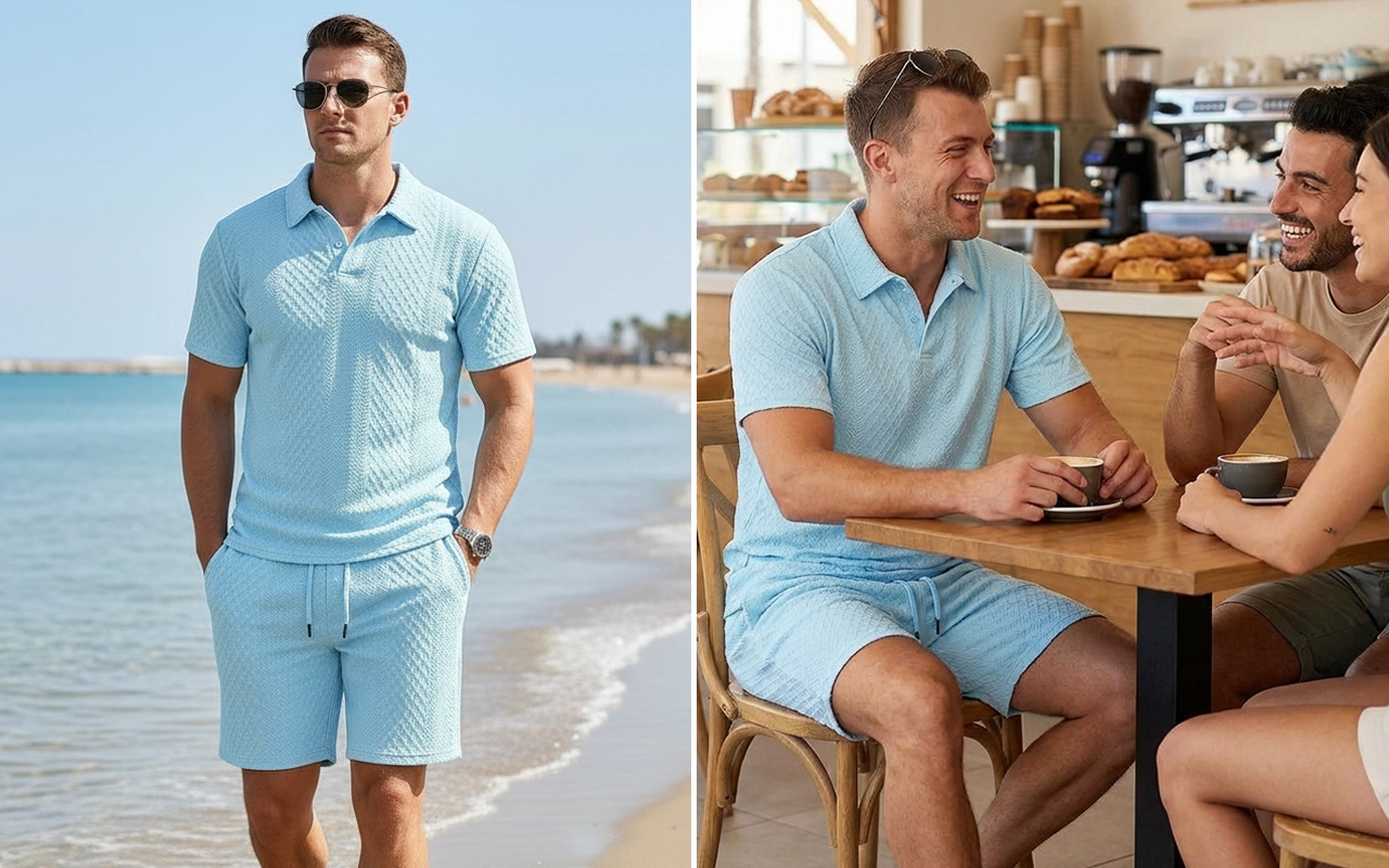 Geniet van warme dagen terwijl je je elke keer fris en zelfverzekerd voelt. De Ortorex set gebruikt een lichte gebreide stof die zacht en luchtig aanvoelt. Het houdt je comfortabel buiten, of je nu ontspant of beweegt. Deze outfit geeft een slimme uitstraling, waardoor je moeiteloos opvalt.