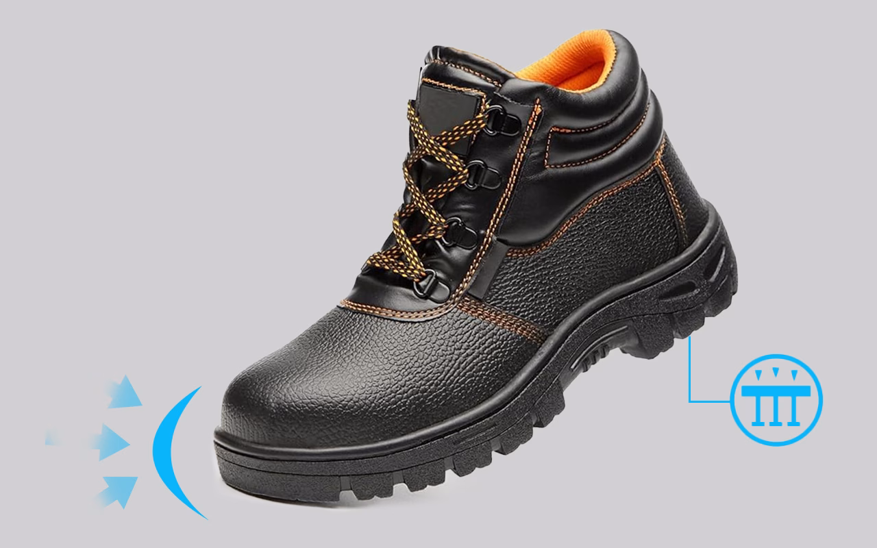 Versterkte stalen neuzen helpen verpletteringsgevaar op het werk te blokkeren. Je voeten blijven veilig, zelfs bij vallend gereedschap of zwaar materiaal.