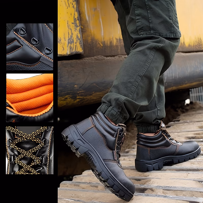 Versterkte stalen neuzen helpen verpletteringsgevaar op het werk te blokkeren. Je voeten blijven veilig, zelfs bij vallend gereedschap of zwaar materiaal.