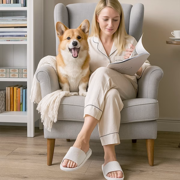 Ik hou ervan hoe licht deze huisschoenen aanvoelen en mijn voeten worden nooit zweterig. Ze drogen snel en ruiken altijd fris, zelfs na uren dragen in huis.