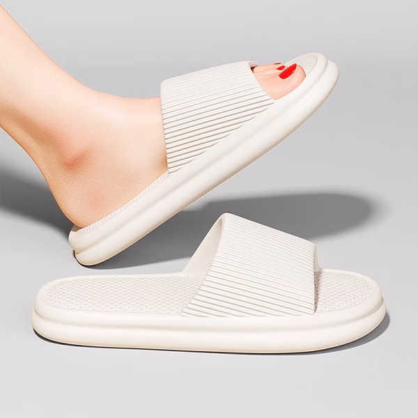 Deze pantoffels zijn de zachtste die ik ooit heb geprobeerd Mijn voeten voelen gelukkig en ontspannen, zelfs na uren staan. De open teen houdt ze lekker koel.