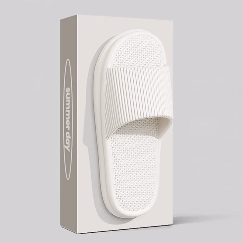 De pantoffels omsluiten mijn voeten zachtjes. Ik trek ze graag ’s ochtends aan omdat de demping zo ontspannend aanvoelt. Nooit meer uitglijden op onze keukentegels!
