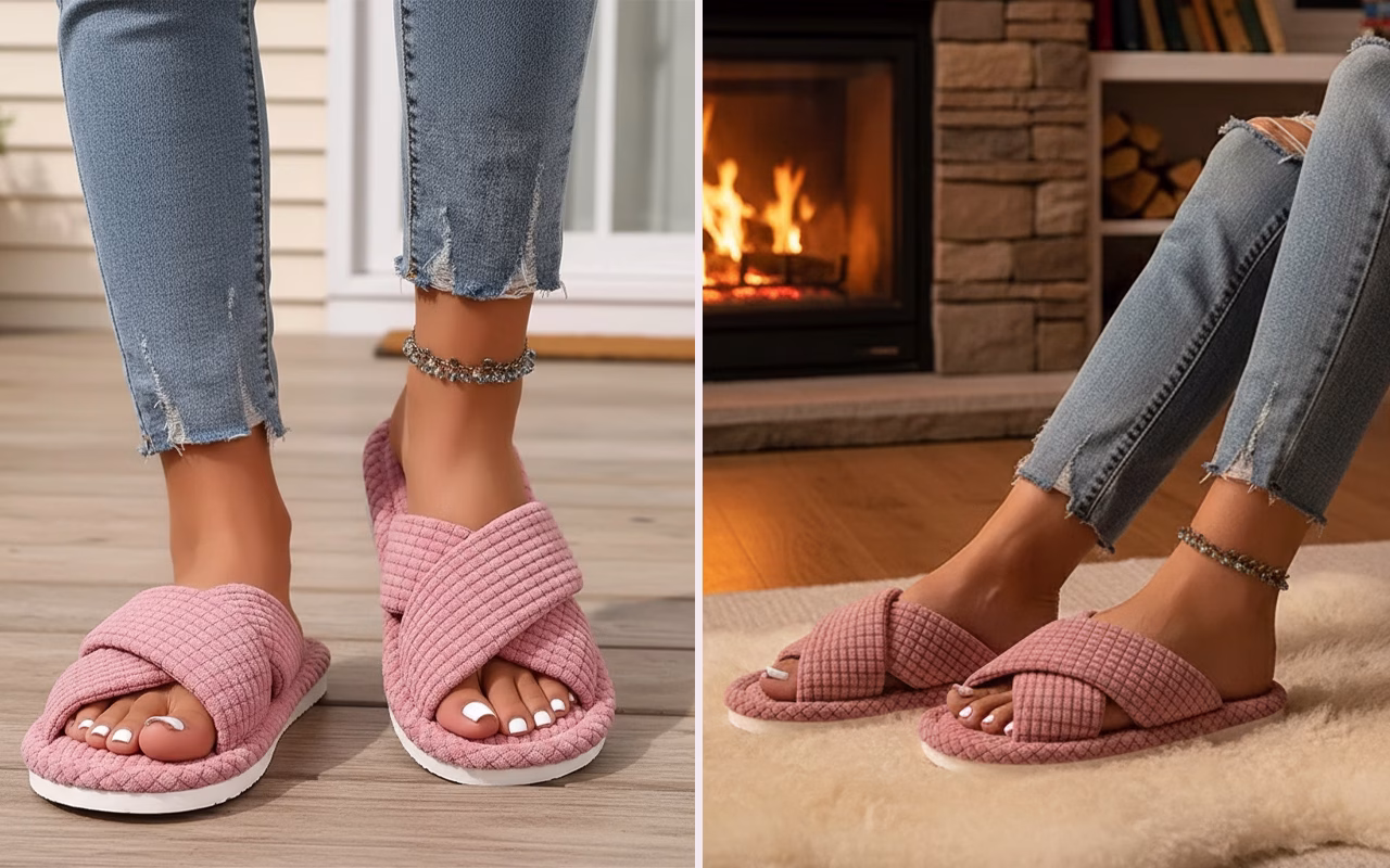 Deze pantoffels zien er echt mooi uit! Het open teengedeelte houdt mijn voeten koel en ze voelen als kleine wolkjes onder mijn voeten.