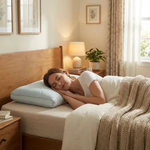Ik beweeg veel ’s nachts en wissel vaak van kant. De vorm vangt mijn hoofd op waar ik ook terechtkom, en de koele hoes voorkomt dat zweet zich ophoopt.