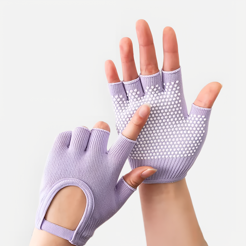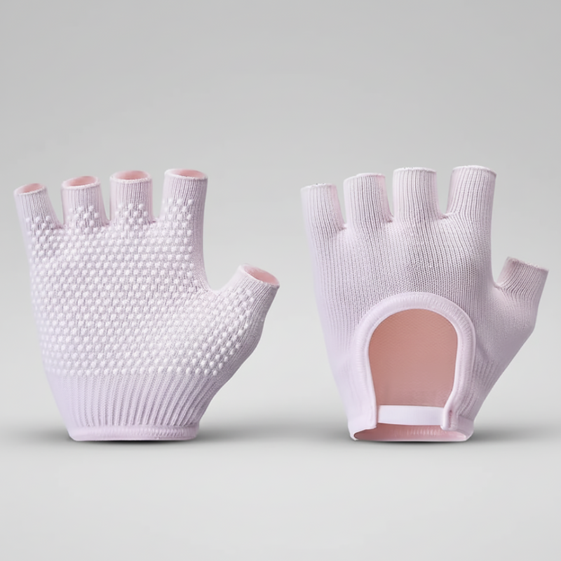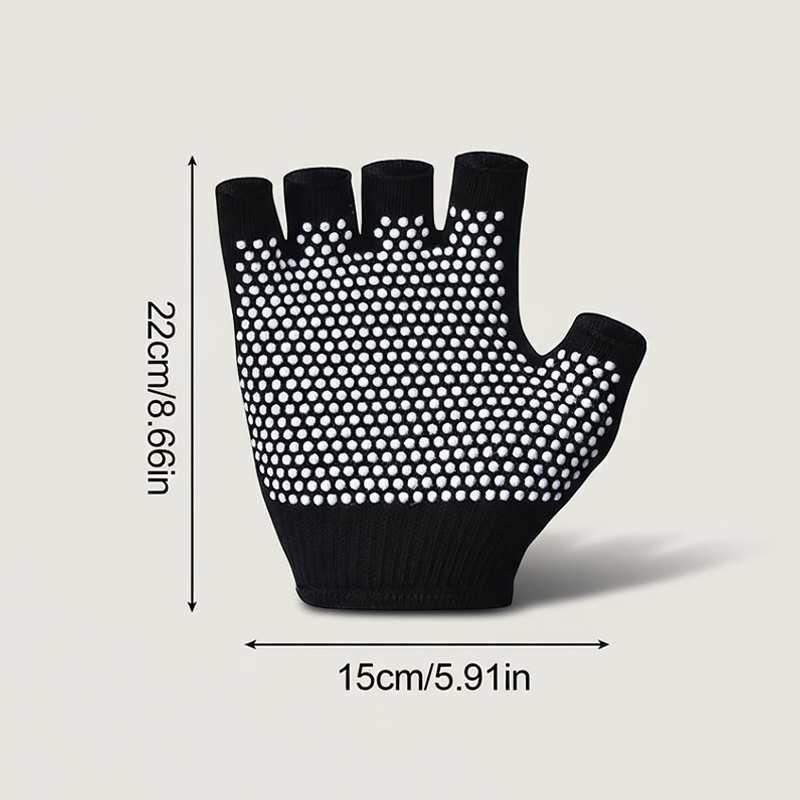 Siliconen stippen op de handpalm zorgen voor stevige grip bij elke beweging. Je blijft stabiel tijdens yoga, pilates of fietsen zonder uit te glijden.