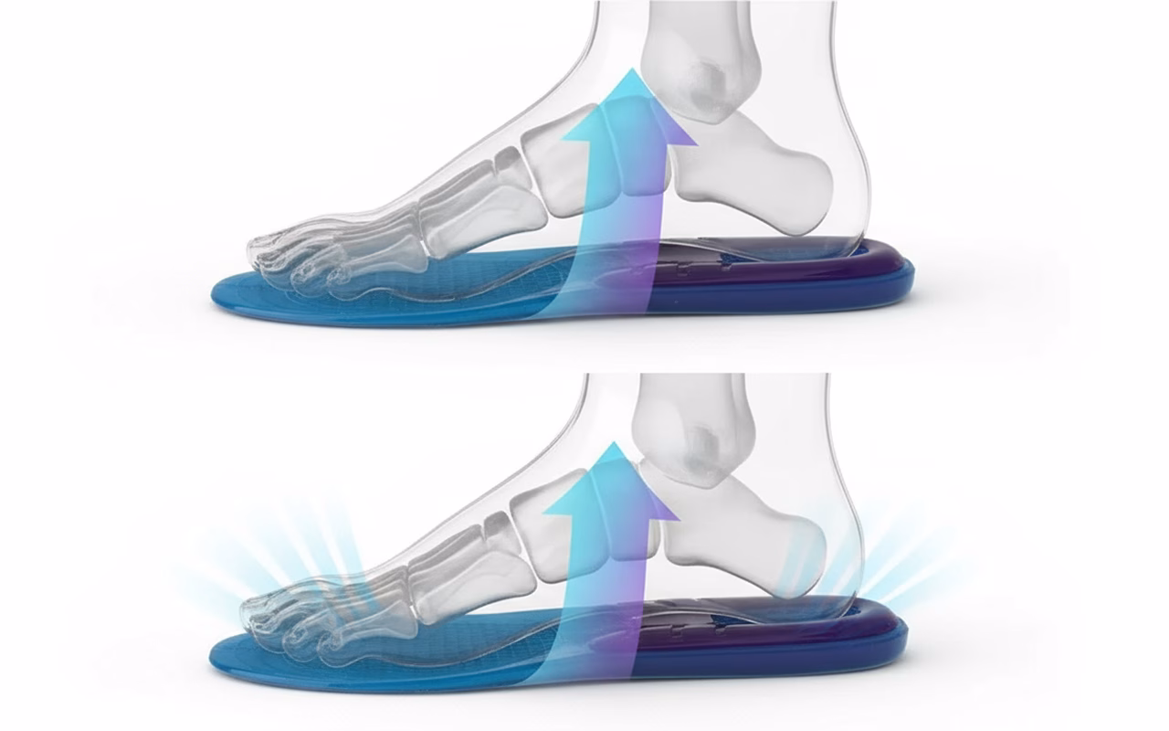 Dikke silicagel kussens verzachten elke stap die u zet. Gewrichten en hielen blijven beschermd, wat dagelijkse belasting vermindert.
