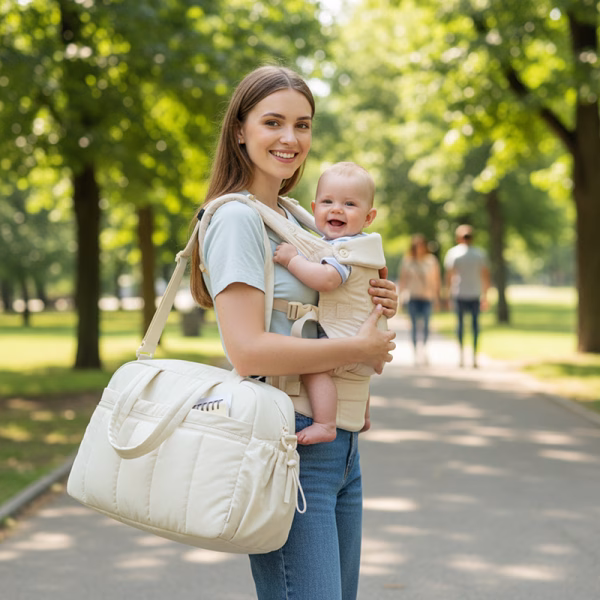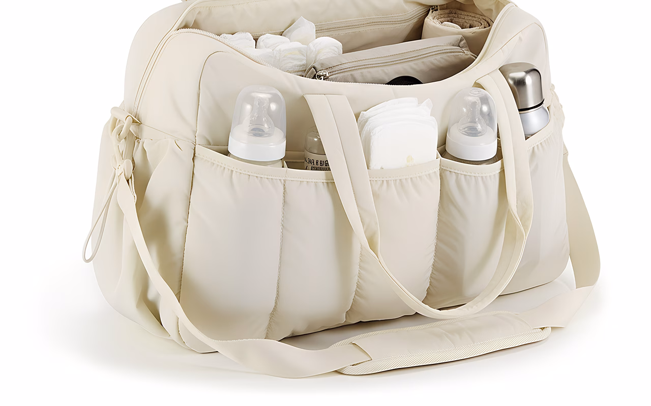 Deze organiser past bij alle benodigdheden van mijn baby. De vakken helpen om snel flessen en doekjes te vinden. Ik vind het geweldig hoe stevig de handvatten aanvoelen, en geen geknoei meer in de tas.