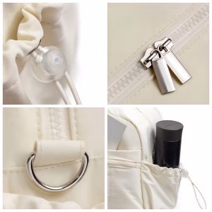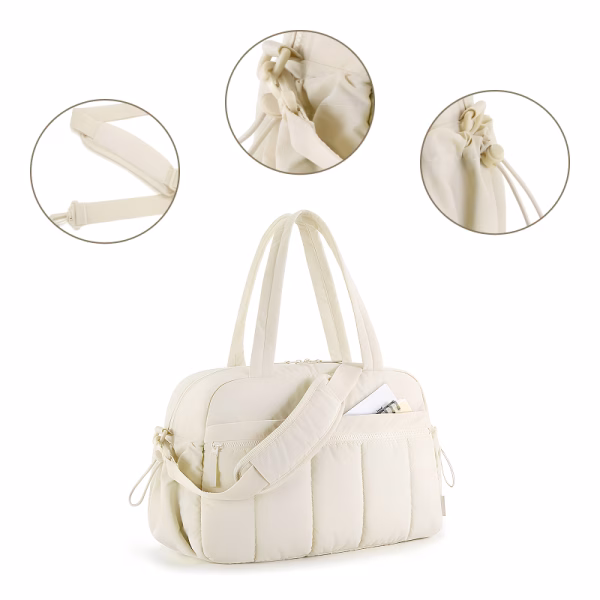Ik grijp altijd deze organiser voordat ik het huis uitga. Hij voelt stevig en glijdt niet van mijn schouder. De spullen van mijn dochter raken niet meer door elkaar.