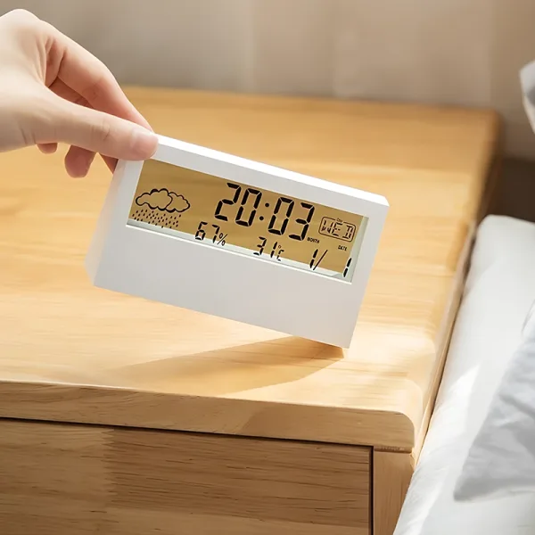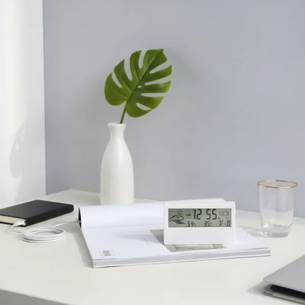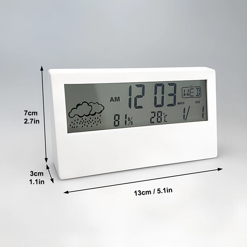 Ik vind het altijd fijn om de temperatuur en luchtvochtigheid te kunnen checken voordat ik naar mijn werk ga. Het alarm is luid genoeg, maar niet te heftig.