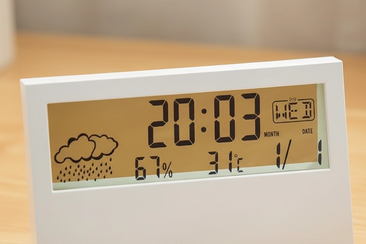 Het display van deze weerklok is zo groot en duidelijk dat ik, zelfs als ik ’s ochtends haast heb, meteen weet hoe het aanvoelt in de kamer.