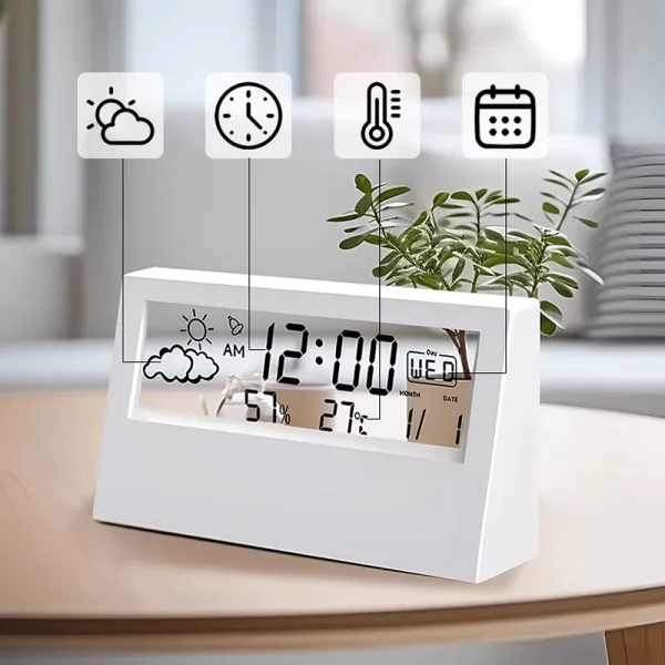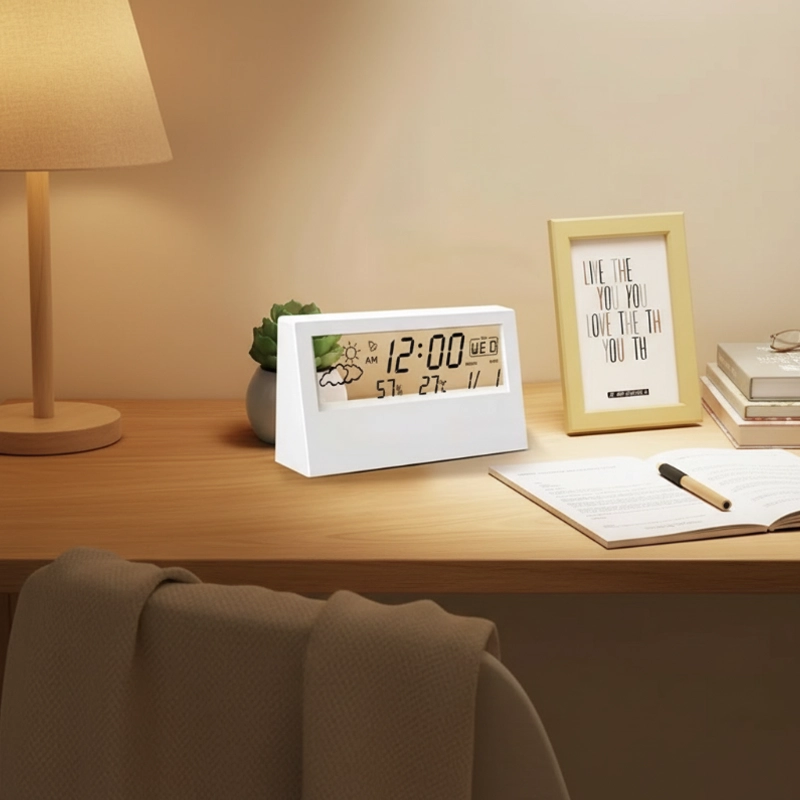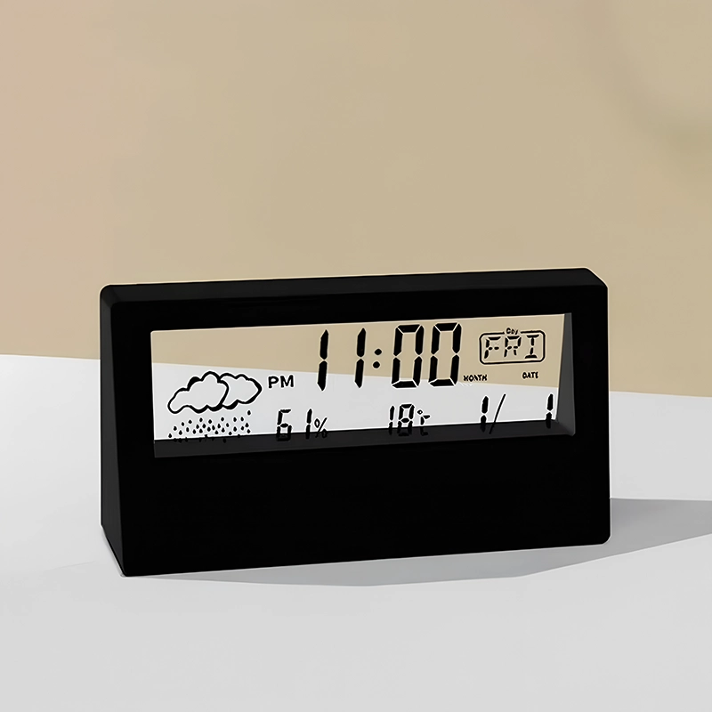 Sinds ik deze klok gebruik word ik altijd op tijd wakker en doordat ik meteen luchtvochtigheid en temperatuur zie, kan ik me goed voorbereiden.