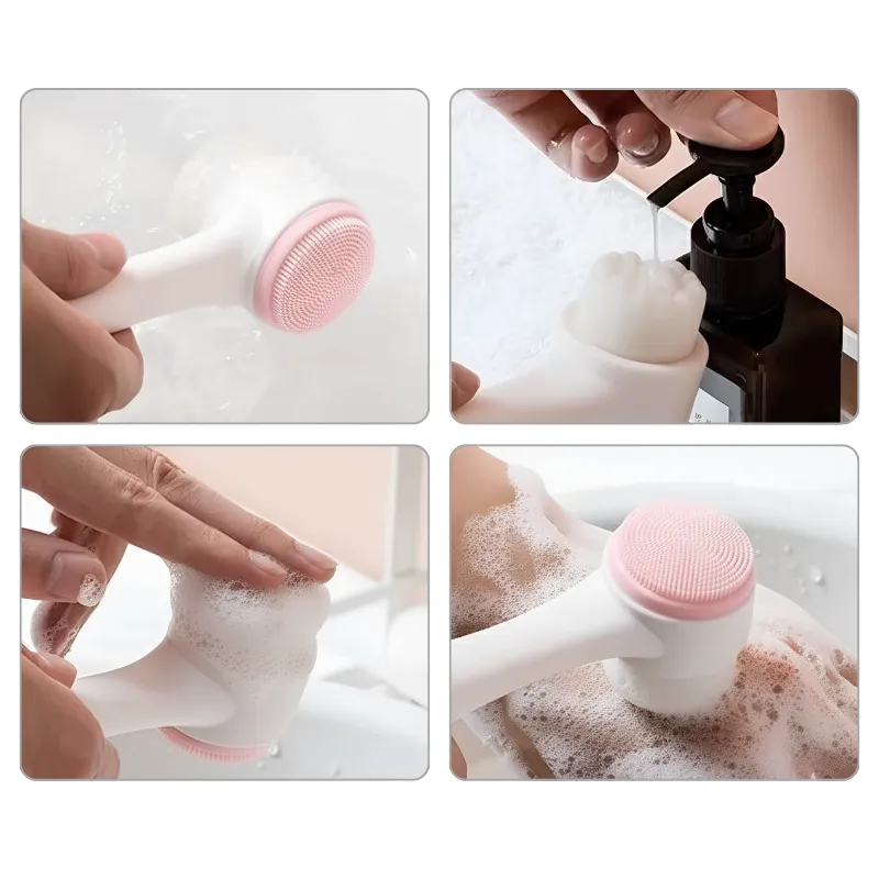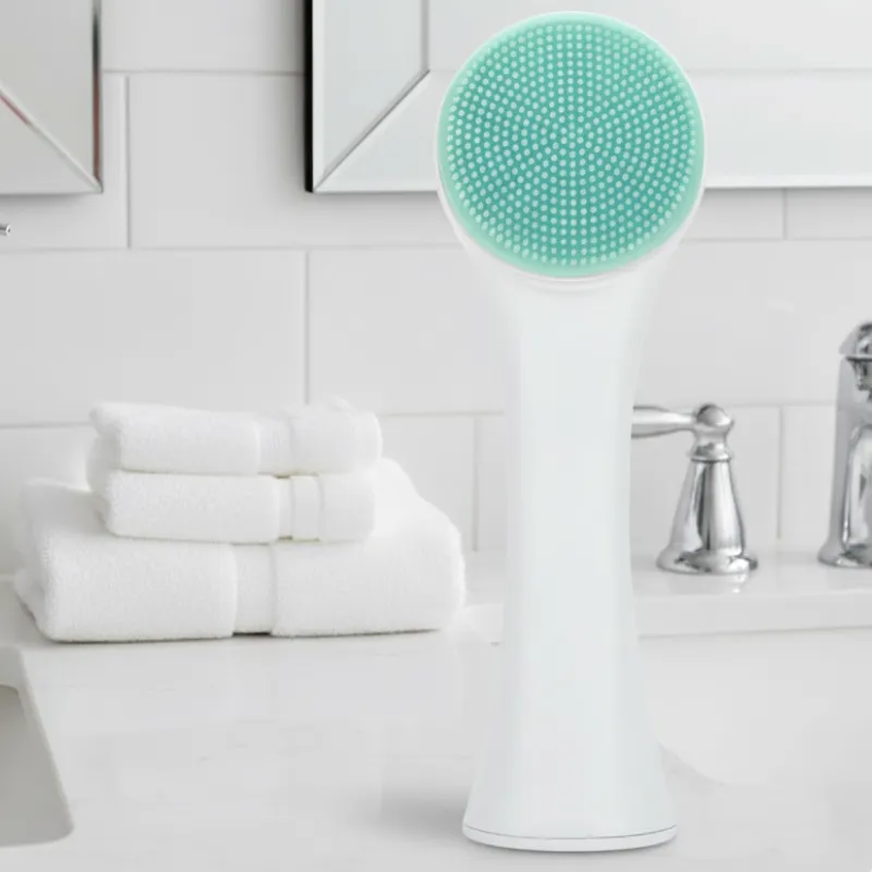 Siliconen puntjes verwijderen hardnekkige onzuiverheden zonder hard te schrobben. Je huid ziet er helderder uit na elke eenvoudige wasbeurt.