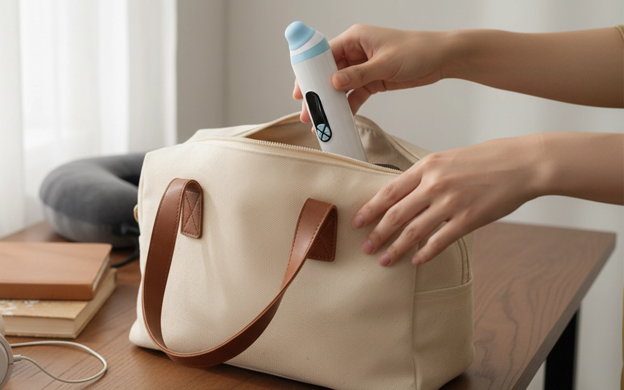 Stop het apparaat in je tas voor moeiteloos dagelijks reizen. Gebruik het overal waar druk opbouwt; geen extra hulpmiddelen nodig.