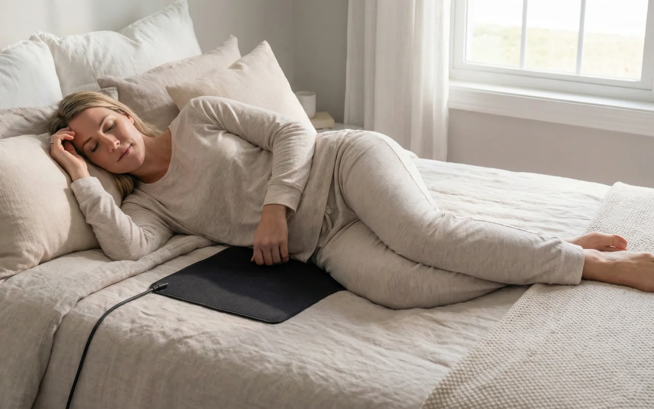 Mijn slaap is echt verbeterd sinds ik de aardingsmat onder mijn laken gebruik. Ik voel me ’s ochtends meer uitgerust en ik val sneller in slaap.