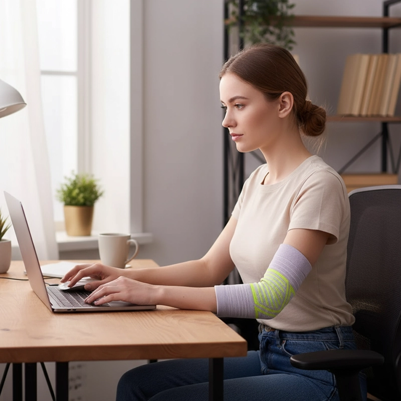 Ik gebruik deze armband elke dag op mijn werk tijdens het typen. Soms vergeet ik dat ik hem om heb omdat hij zo licht is en geen afdrukken achterlaat. Mijn elleboog voelt nu veel beter.