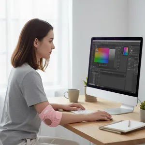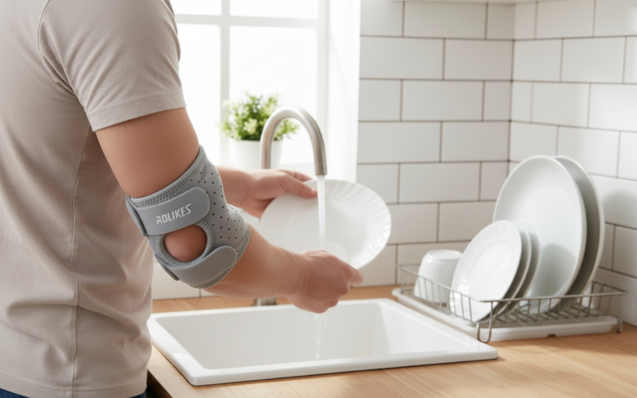 Ik draag deze steun op mijn werk en tijdens het fietsen. Super lichtgewicht, en mijn arm voelt niet warm, zelfs niet na uren. Helpt me zeker om in beweging te blijven.