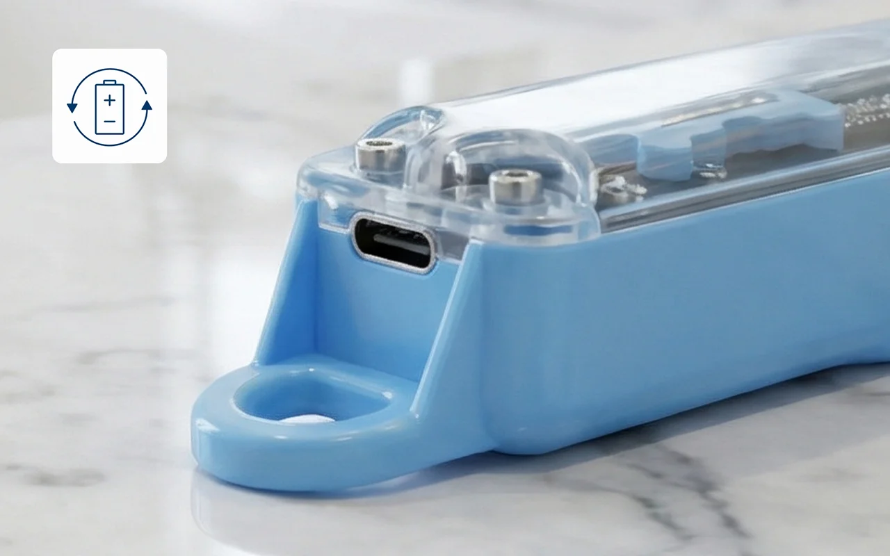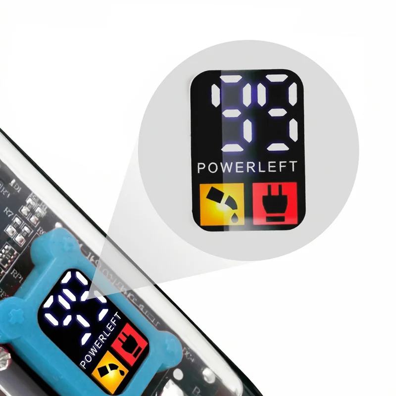 Laad snel op via USB voor betrouwbaar dagelijks gebruik. Het digitale display zorgt ervoor dat je altijd weet wanneer opladen nodig is.