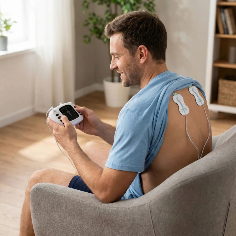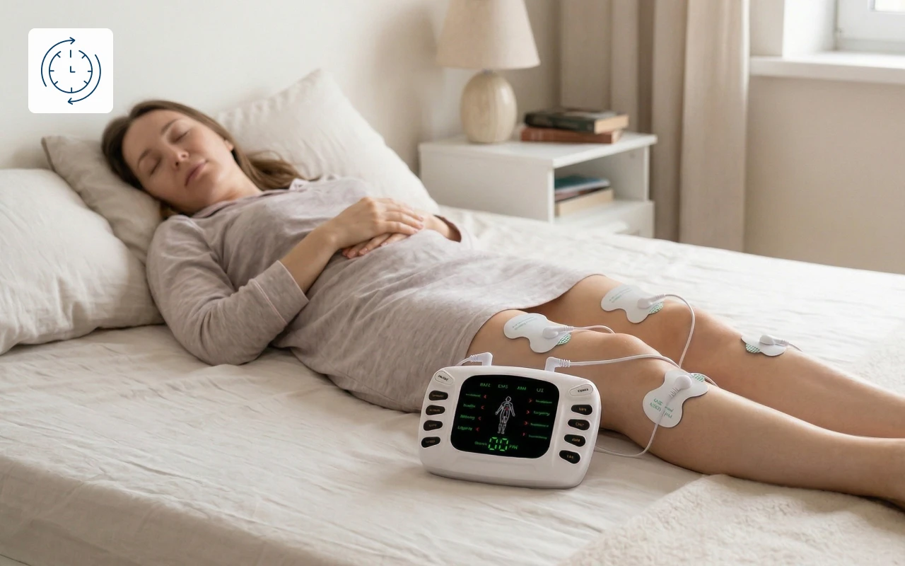 Ik gebruik de stim op mijn schouders terwijl ik in bed lees. De zachte pulsen kalmeren de spieren en tegen de tijd dat hij uitschakelt, ben ik klaar om te slapen.