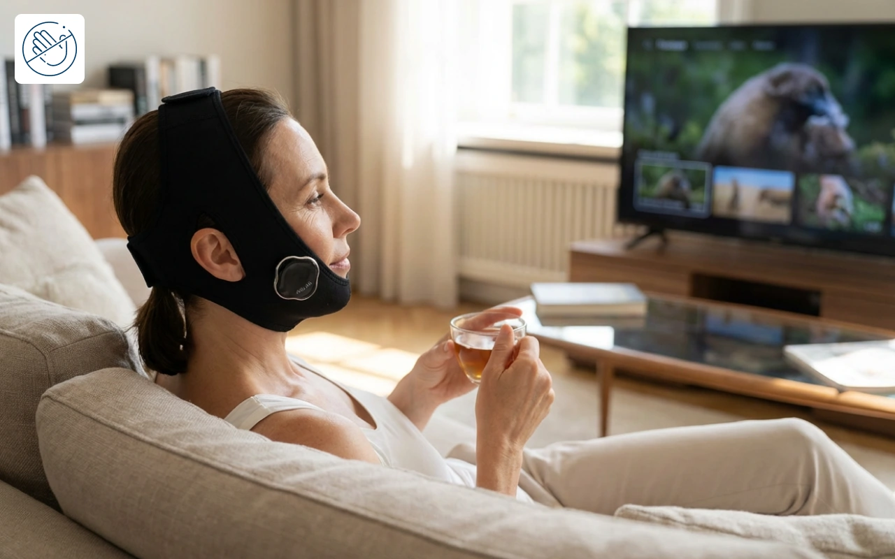 Ik gebruik het tijdens huiswerk maken en merk nauwelijks dat het er zit. Geweldige resultaten—mijn gezicht voelt strakker met minder verslapping.