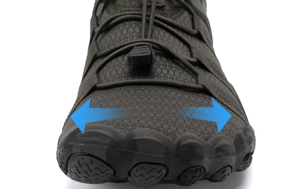 Deze barefoot schoenen dragen voelt alsof ik met mijn tenen vrij over koel gras loop. Het trekkoord bespaart zoveel tijd. Heerlijk de hele dag in het park gewandeld.
