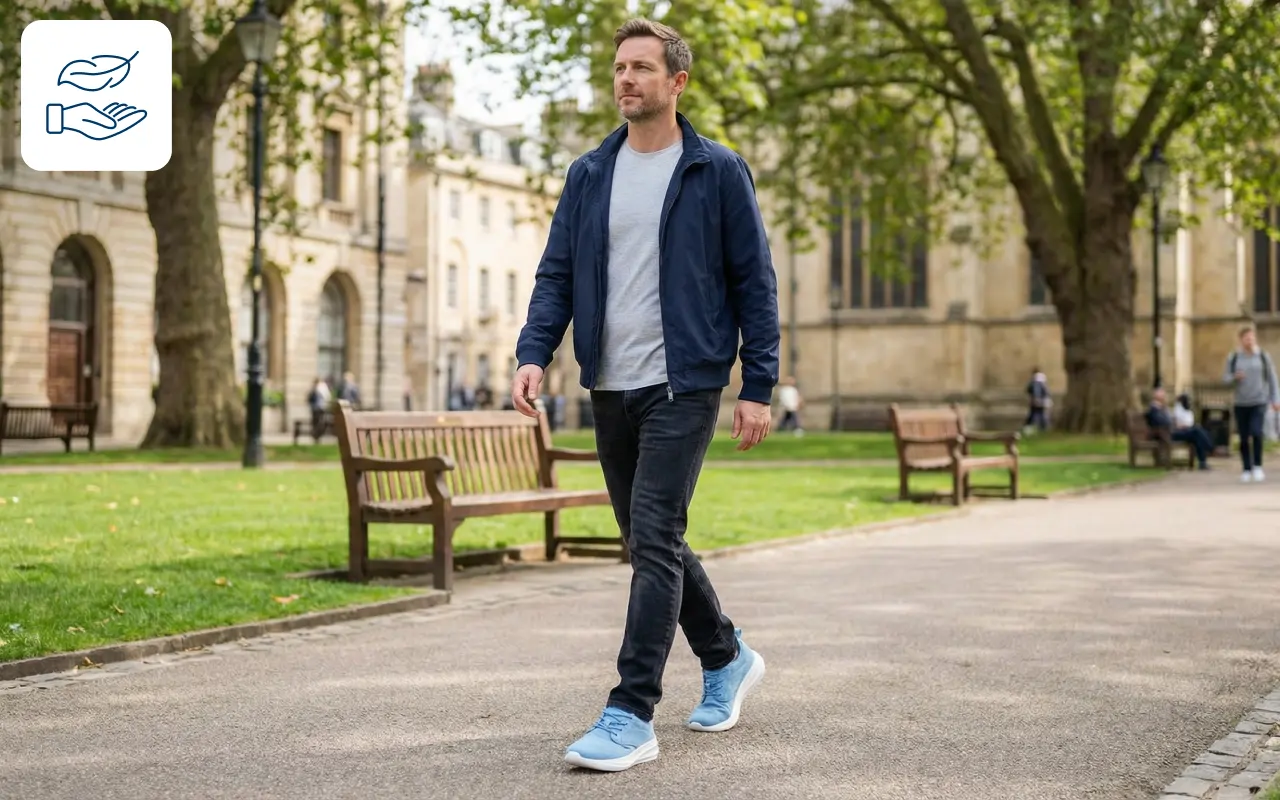 Beweeg natuurlijk terwijl je op elk oppervlak gesteund blijft. Het lichte gevoel houdt je stappen energiek en pijnvrij.