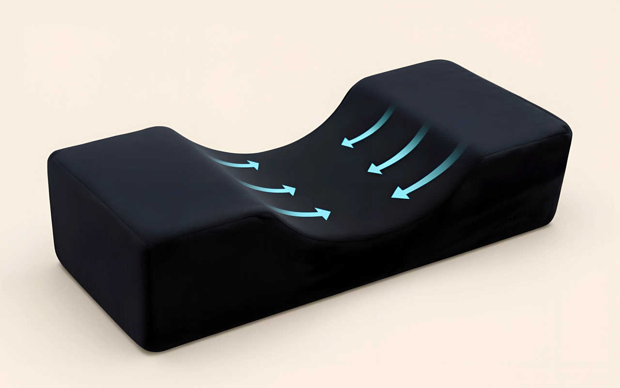 Unieke holle vorm volgt de natuurlijke curve van je nek. Dit ontwerp vermindert pijn en houdt je hoofd in de juiste positie.