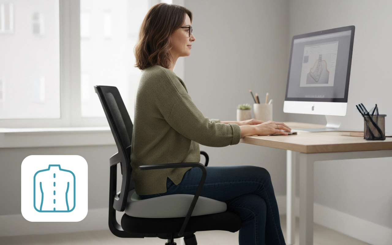 Pijn door harde stoelen kan de dag zwaar maken. Deze ondersteuning vermindert ongemak, zodat je je kunt richten op wat belangrijk is.