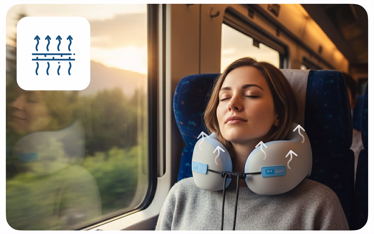 Fijn hoe zacht hij aanvoelt. Geen zweten meer tijdens zomerse reizen. Geeft mijn nek precies de juiste ondersteuning.
