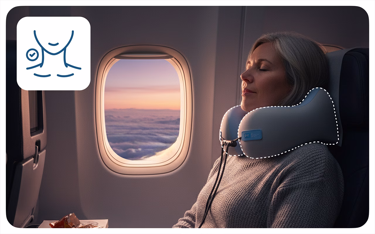 Ik reis veel voor mijn werk en dit is echt een uitkomst. Mijn hoofd zakt niet meer weg en het blijft urenlang comfortabel.