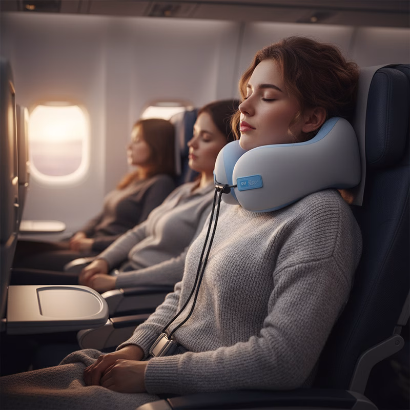 Ik reis veel voor mijn werk en dit is echt een uitkomst. Mijn hoofd zakt niet meer weg en het blijft urenlang comfortabel.